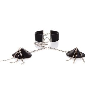 Dress down for a naughty show with the Adore Le Burlesque Collar & Pasties! Made with faux leather and metal for a super-kinky vibe. Discreet shipping.