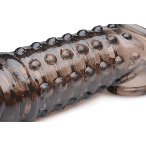 Instantly add 1.5 inches to your shaft for big-time fun in bed! Textured design for stimulation. Ball strap for secure fit. Order now for discreet shipping.
