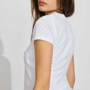 ’90s Crewneck T-Shirt White women – Your new go-to t-shirt . Features Crewneck Short sleeves Size & Fit Fit: Fitted Length: Cropped Model is wearing size S Materials & Care Content: 100% cotton Care: Machine wash, cold Imported