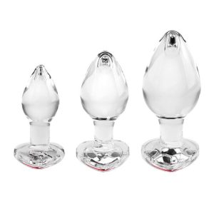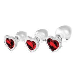 Adam & Eve Red Heart Gem Glass Plug Set