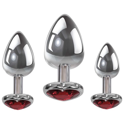 Train your rear with this anal trainer set of 3 metal butt plugs with eye-catching gems. Start small & work your way up for anal fun! Order yours today.