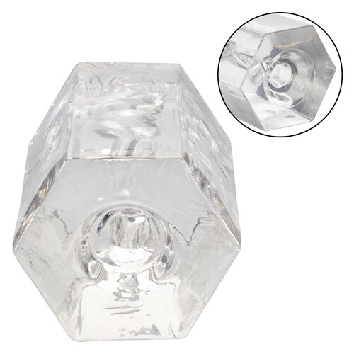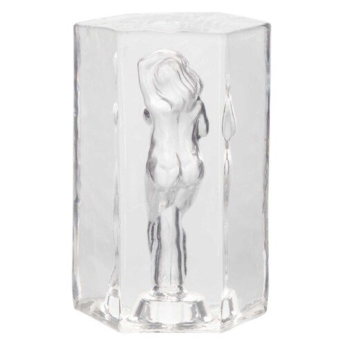 Tight & stretchy masturbator squeezes your manhood! Transparent design with a sexy, naked girl inside. Watch yourself fill her up!