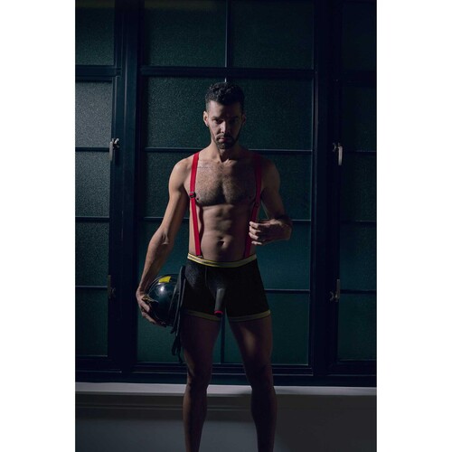Is it hot in here or is that just you? Fight fires in these tight bottoms and sexy suspenders.
