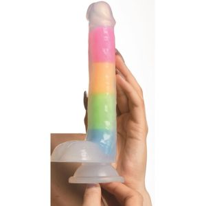 Light up your night with this rainbow glow in the dark dildo with balls! Dual-density firm inner core with soft outer skin feels so real. Great low price!