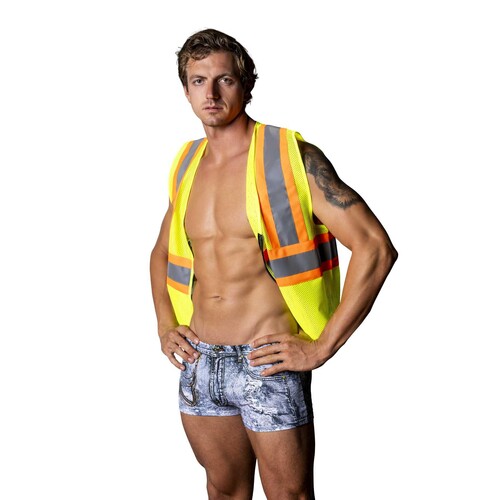 Workin’ hard or gettin’ hard? Do both in this sexy construction costume! Great for parties, roleplay, or as a gag gift.